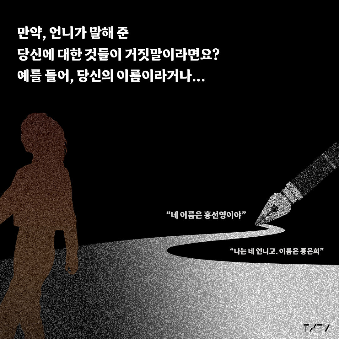 “천지간에 너하고 나, 둘뿐인데. 하나뿐인 언니 이름도 까먹냐?”